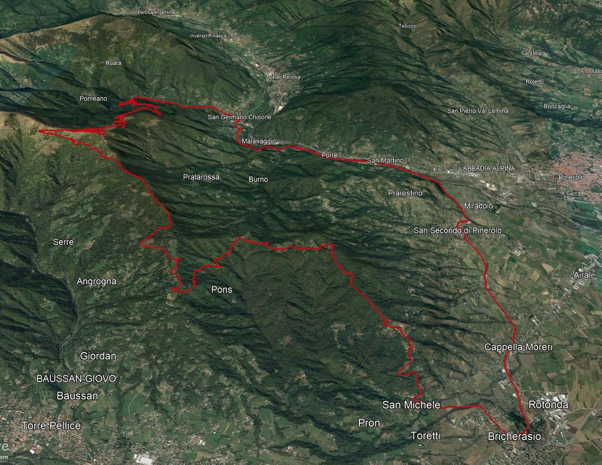 L’anello si snoda tra Bricherasio (388 m) e il Colle Vaccera (1.502 m), restando sul filo dei crinali tra Val Pellice e Val Chisone. Il percorso infatti tocca gli spartiacque che dividono i torrenti Chiamogna, Turinella, Angrogna e Risagliardo, attraversando le località di Santa Caterina (505 m), Piani (890 m), Colletta (855 m) e Sea di Rognosa (1.310 m), permettendo di ammirare splendidi panorami sia verso la pianura che verso le vallate.