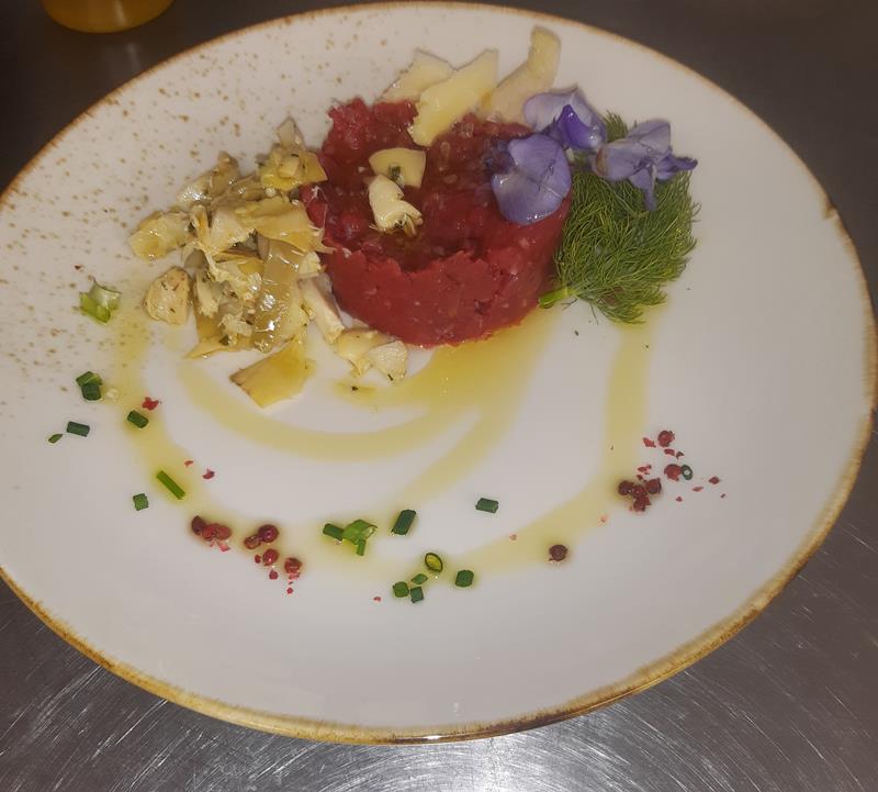 La nostra semplice cucina di prodotti locali, con alcune rivisitazioni di vecchie ricette, è servita in un luogo antico di pietre e legno, con un parco fiorito che fa da contorno, e nel nuovo dehors coperto.