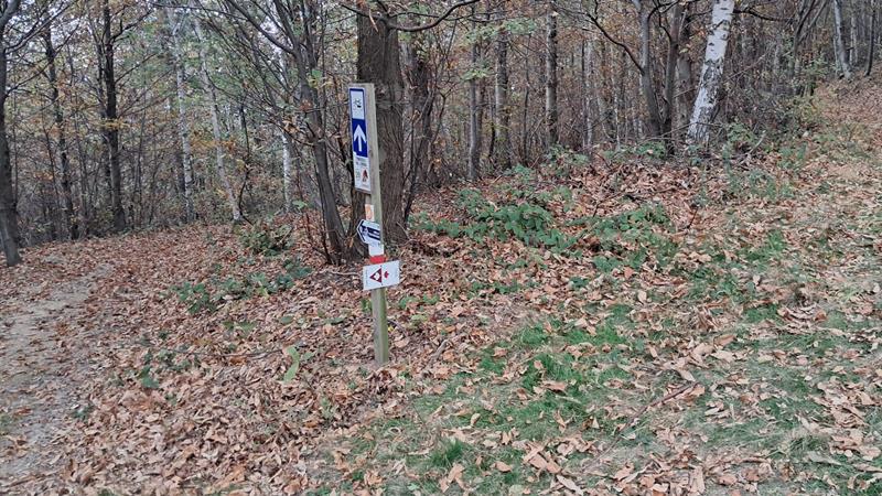 Dal Colle Infernetto non si prosegue più verso il Monte Muretto: il nuovo tracciato svolta a sinistra su una pista sterrata immersa nei boschi della Val Noce, passa ai piedi di Rocca Vautero e torna sull’asfalto presso l’omonima borgata, chiudendo comodamente il giro.