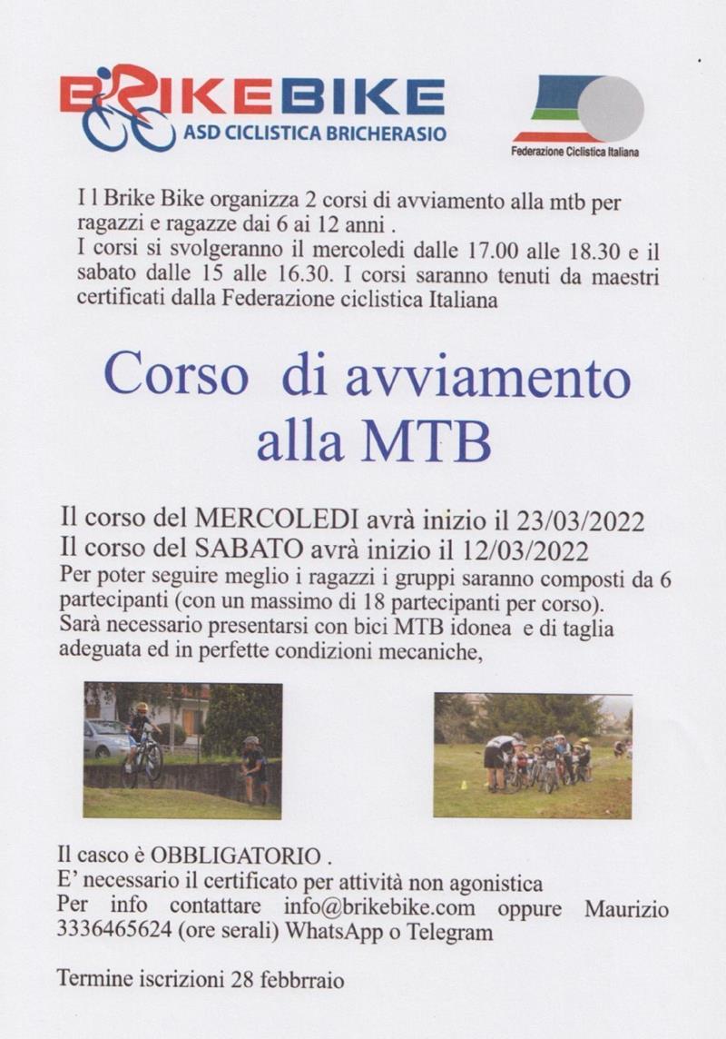 L’Associazione Ciclistica di Bricherasio Brike Bike, dopo due anni di assenza per Covid, organizza due corsi di avviamento alla mountain bike tenuto da maestri della Federazione e riservato a ragazzi e ragazze dai 6 ai 12 anni presso la pista bmx di Via Bellville, a Bricherasio. Il corso in dieci lezioni articolate nell’uso della mountain bike si svolgono il mercoledì dalle 17 alle 18,30 e il sabato dalle ore 15 alle 16,30 con inizi previsti per sabato 12 marzo e mercoledì 23 marzo. Per poter seguire meglio i giovani i gruppi saranno composti da sei partecipanti con un massimo di diciotto per ogni corso. Per partecipare occorre essere muniti di casco obbligatorio, bicicletta mtb idonea di taglia adeguata in perfette condizioni meccaniche e certificato medico di idoneità all’attività sportiva agonistica. Per maggiori informazioni ed iscrizioni entro lunedì 28 febbraio rivolgersi a Maurizio al numero 333/6465624 in ore serali via whatsapp e telegram oppure sul sito info@brikebike.com.