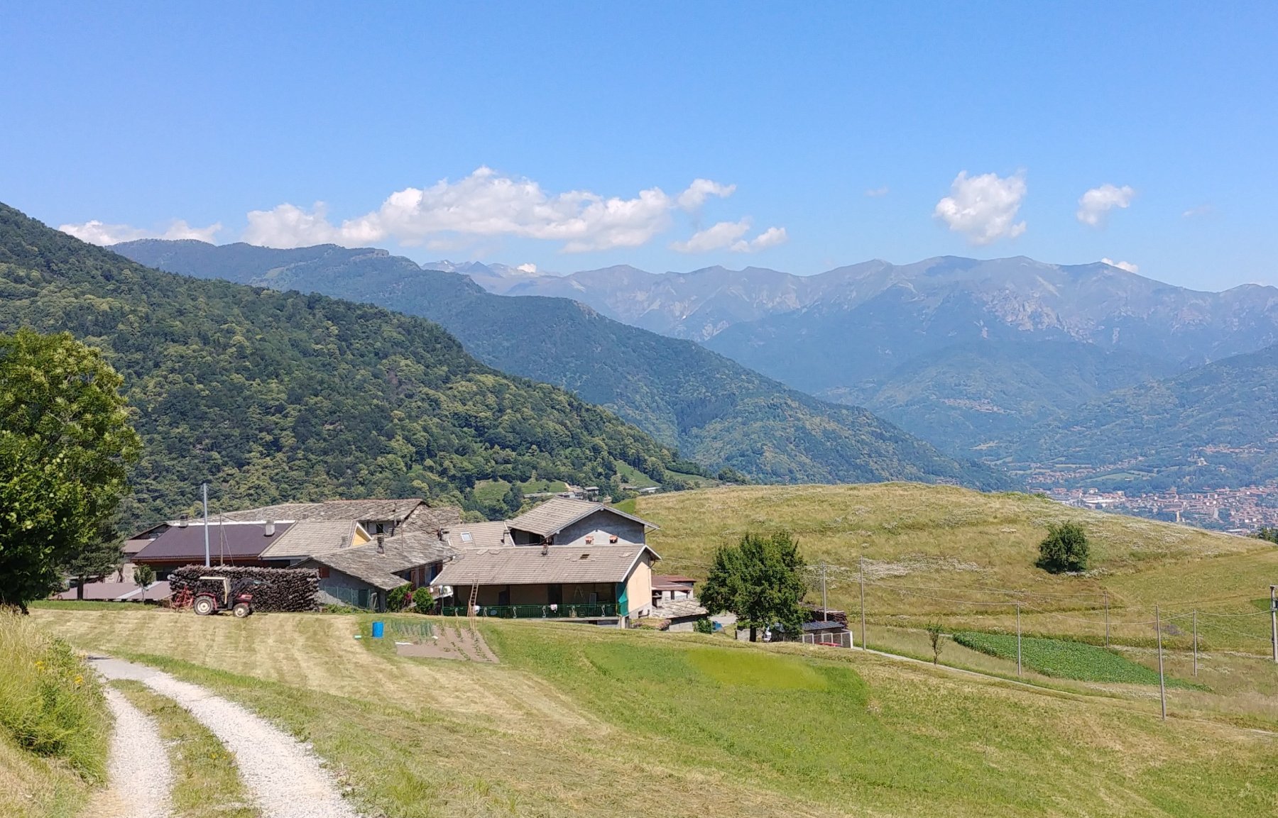 Si prosegue con la strada asfaltata che ci conduce verso località avvolte dalla tranquillità della natura che le circonda, e una dopo l’altra si raggiungono le borgate di Rostagni Vernetti e Pralarossa raggiungendo quota 915 m e sopratutto un bellissimo panorama che spazia sulla val Chisone. Salita in direzione ovest e dopo circa 8 km dalla partenza, si raggiunge la località Godini 1000 m punto più alto del percorso. La strada sterrata scende verso sud ovest ci conduce velocemente verso la stele di Midana in località Cardoni e al Bosco Didattico in località Colletta a 860 m sul livello del mare.
