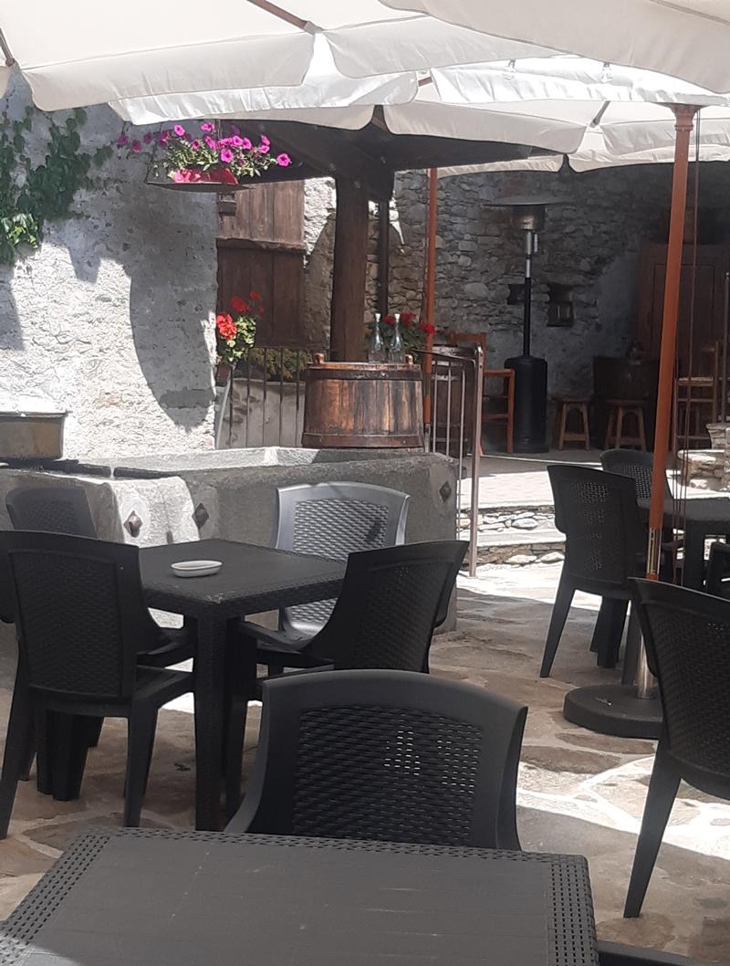 La nostra semplice cucina di prodotti locali, con alcune rivisitazioni di vecchie ricette, è servita in un luogo antico di pietre e legno, con un parco fiorito che fa da contorno, e nel nuovo dehors coperto.