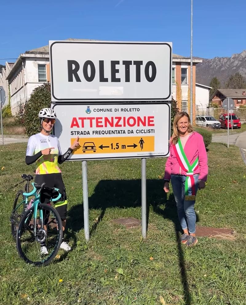 Si è concluso mercoledì scorso il tour di Paola Gianotti attraverso 16 Comuni del Pinerolese per l'inaugurazione dei cartelli "Io Rispetto il Ciclista". Due giorni intensi, tra sole autunnale e pioggia, che hanno visto l'ultra-ciclista e attivista attraversare in bicicletta l'intero territorio insieme a Davide Benedetto di Upslowtour – Pinerolese Terra di Bici e a numerosi ciclisti locali, incontrando amministrazioni comunali entusiaste e cittadini.